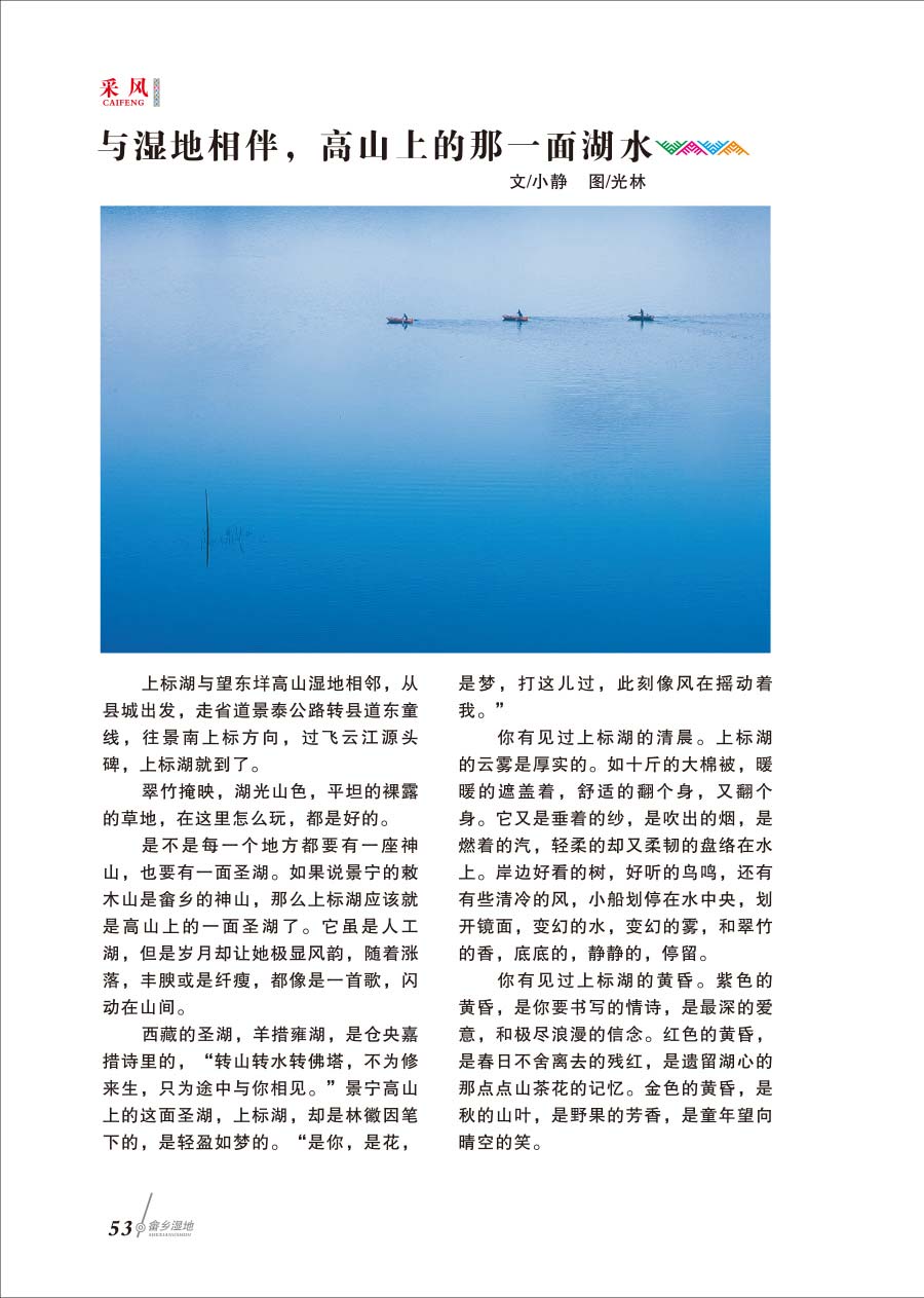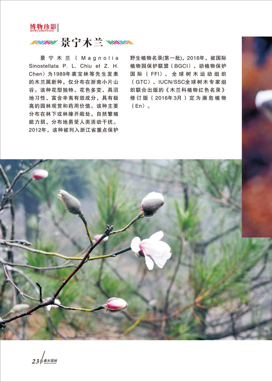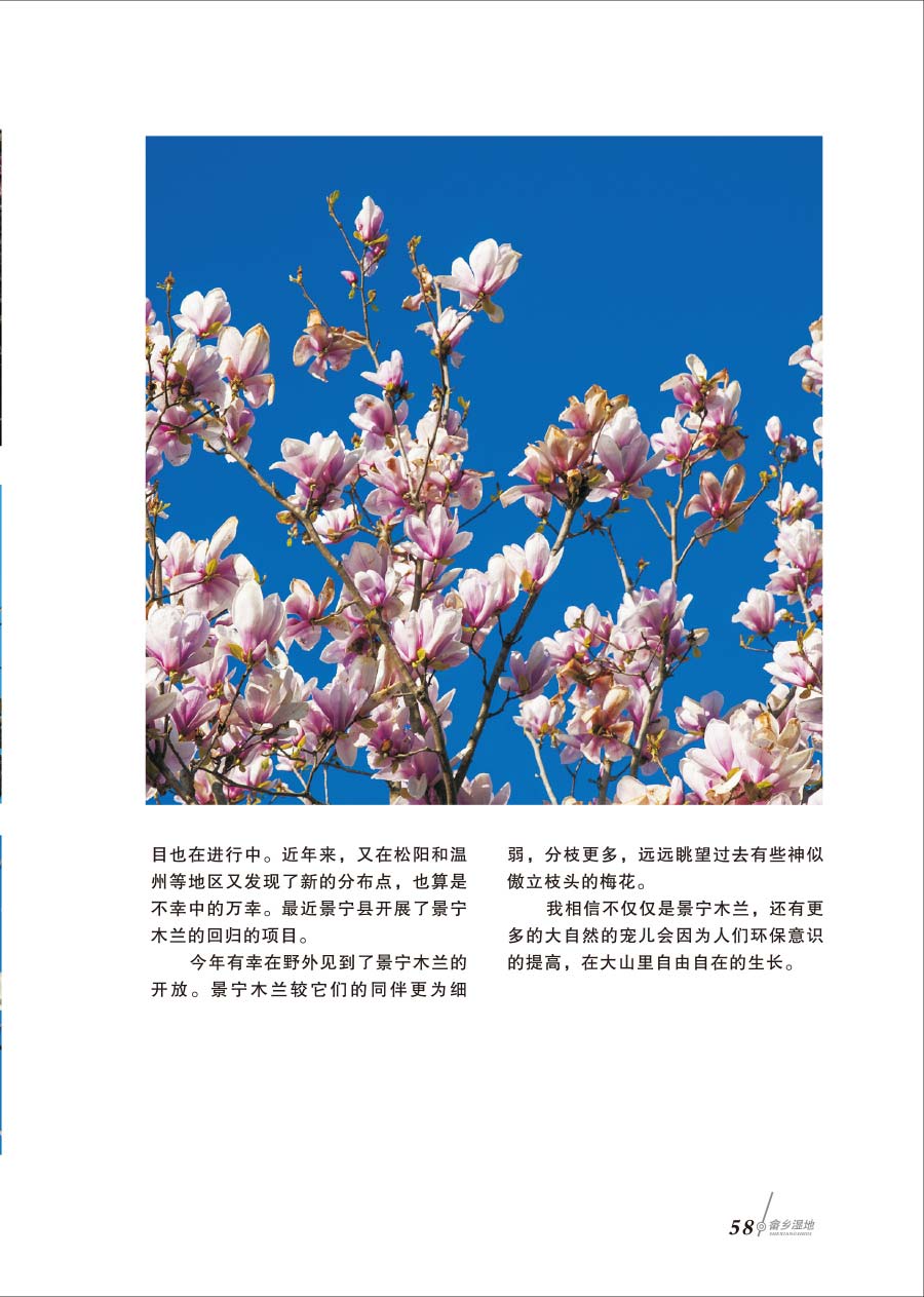 - 《畲乡湿地》杂志,是全面展示记录景宁畲族自治县湿地保护工作历程,由望东垟高山湿地自然保护区管理局和大仰湖省级自然保护区管理局联合主办。《畲乡湿地》 将在每年仲夏与初冬之际准时与您见面,与您一起分享湿地资源保护资讯,展示湿地科普科研成果,记录湿地探索与发现,挖掘与厚植湿地人文。