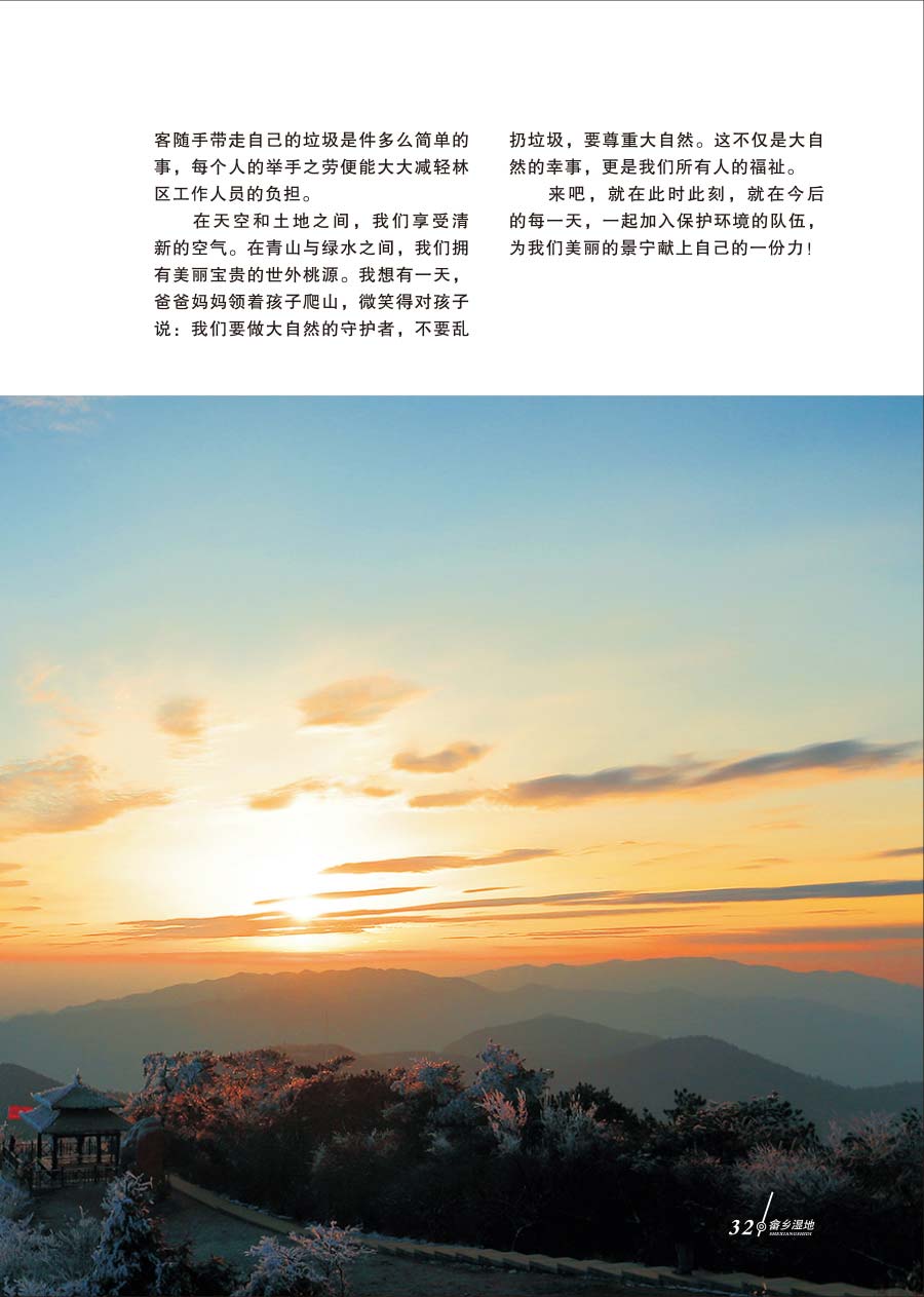 《畲乡湿地》捧出精美的画面,收录感人的华章,这是我们的郑重承诺。畲乡景宁有着丰富的湿地资源,湖泊、河流、梯田、水库、池塘都属于湿地,湿地就在您身边。您的参与,是推动我们不断前行的重要力量。我们期待与您携手,共同前行。《畲乡湿地》愿以自己的绵薄之力,汇聚起畲乡景宁保护湿地的最强音,弹奏出畲乡景宁生态发展的和谐乐章。